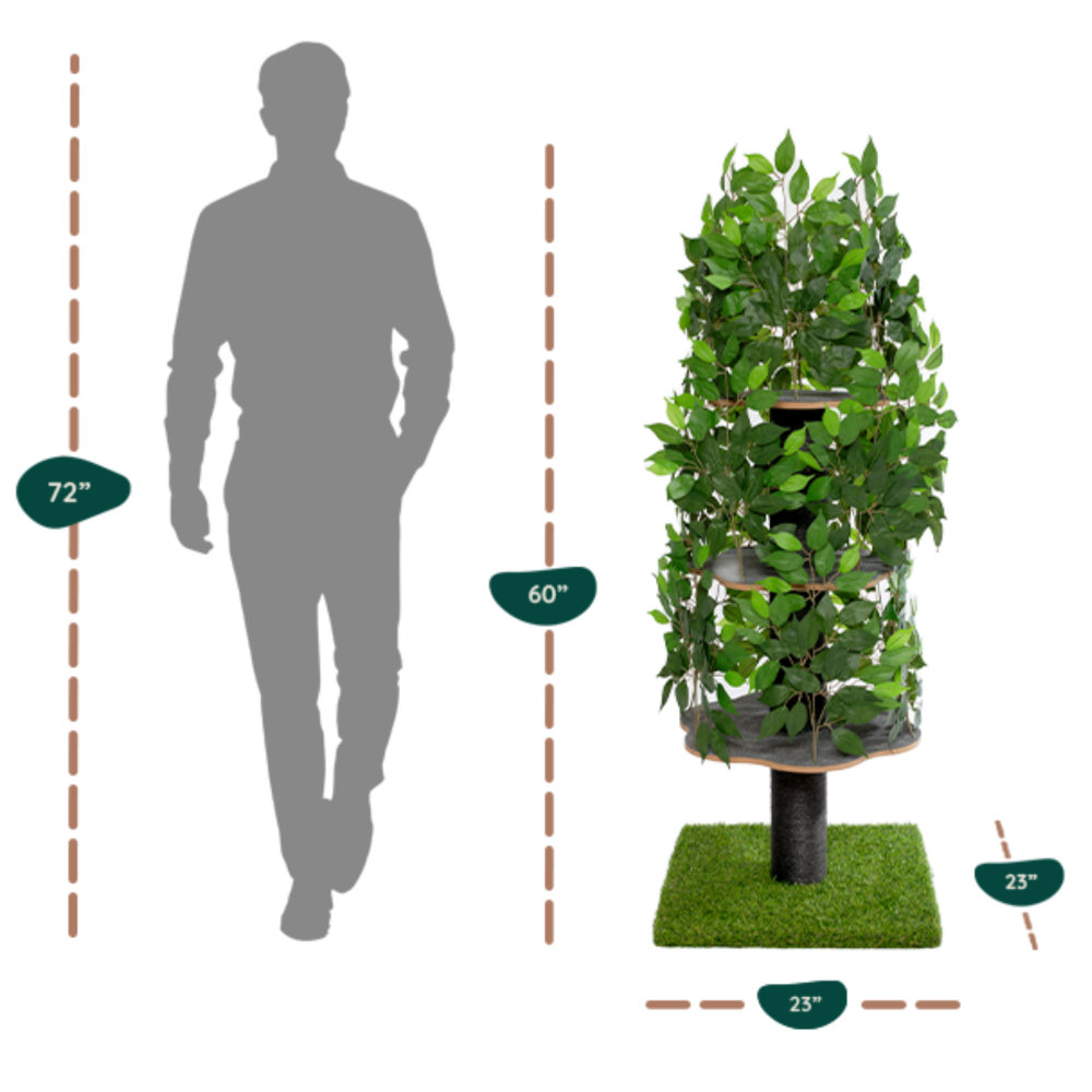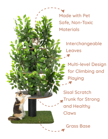 Eine Katze zu haben bedeutet nicht, dass Sie auf Ihre Einrichtung verzichten müssen. Mit seinem modernen Look und den austauschbaren Blättern ermöglicht Ihnen unser Baum, Ihren stilvollen Wohnraum zu erhalten.