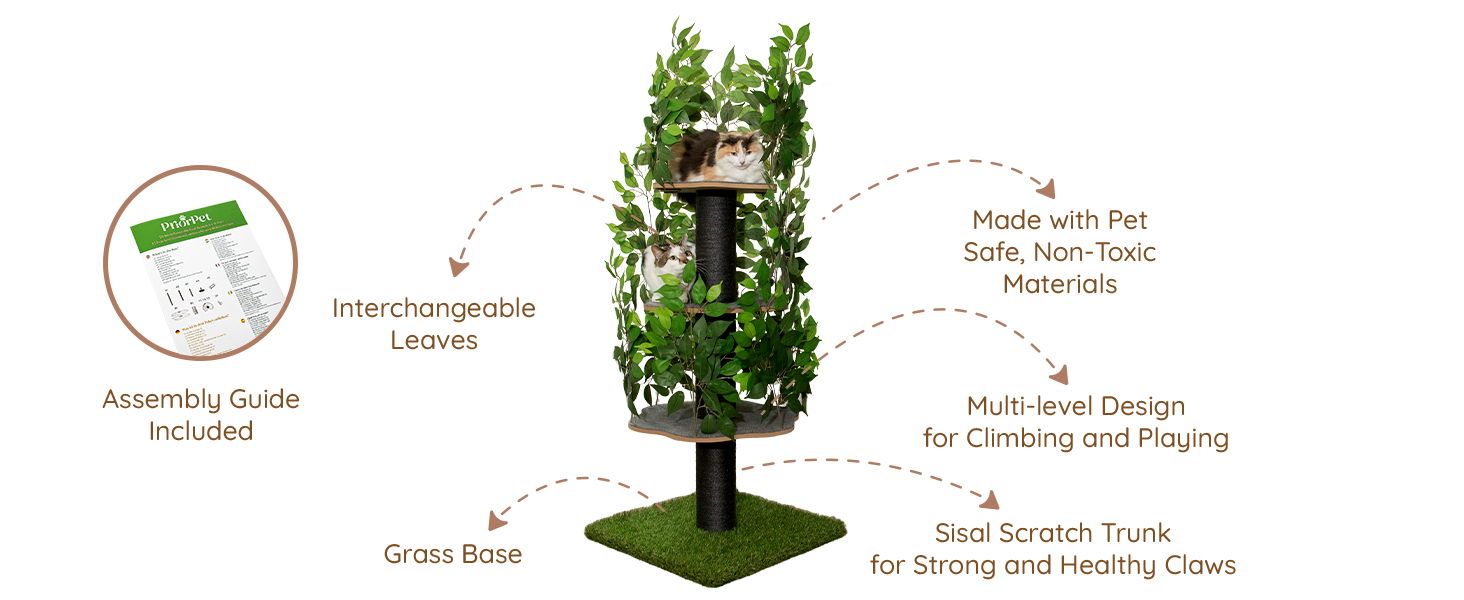 Kratzbaum Natur zum Klettern, Verstecken und Schlafen - groß mit austauschbaren Blättern - mehrstufig, einfach zu montieren - haustiersichere Materialien, langlebige und robuste Cat Tree