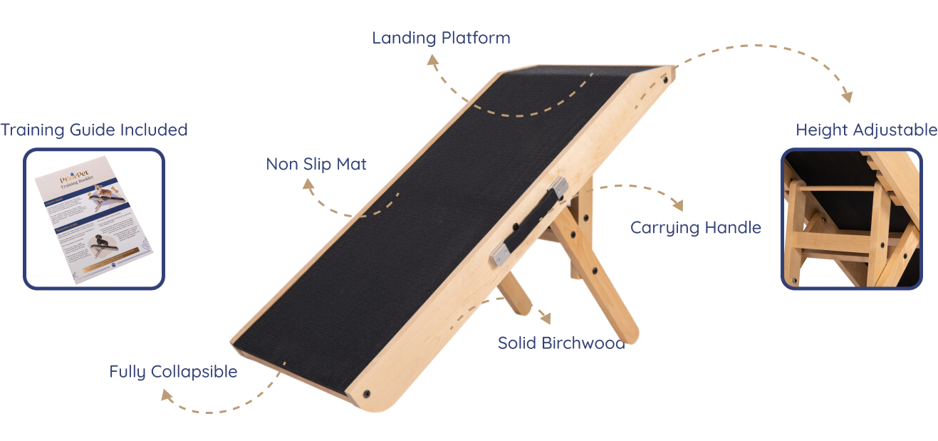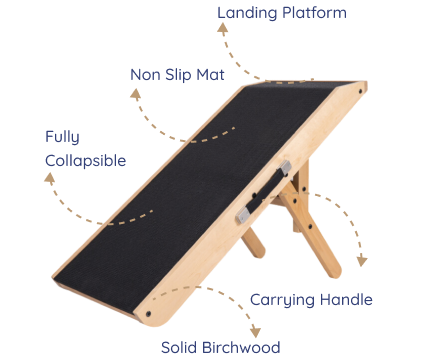 Provides safety and comfort for dogs, with no gap between the ramp and couch/bed. Ideal for dogs with joint/back problems or high body weight.